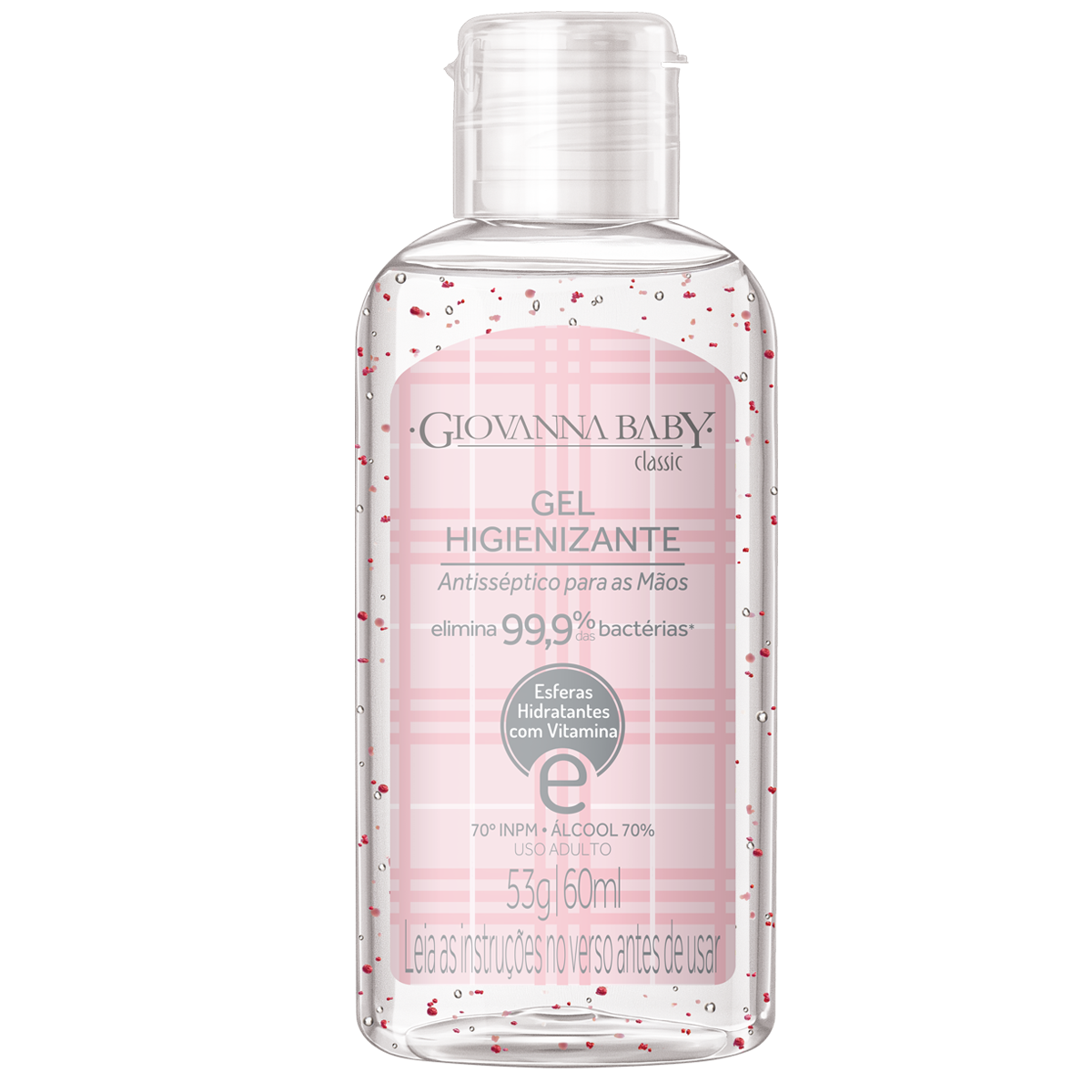 O Álcool em Gel Higienizante Giovanna Baby é um excelente produto para higiene pessoal das mãos. Seca instantaneamente, deixando uma sensação de limpeza e toque aveludado com suave perfume, sem ressecar e sem deixar as mãos pegajosas. Vitamina E + esferas hidratantes.